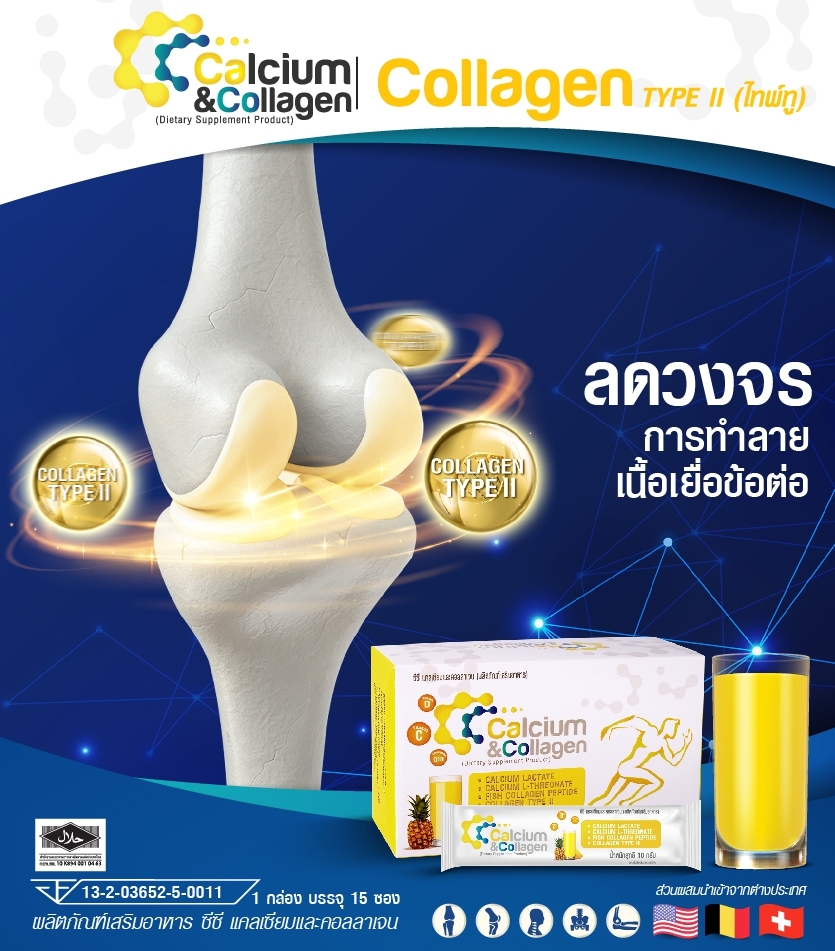 ใครควรกิน? ซีซี แคลเซียมและคอลลาเจน(CC-Plus) - ผู้ที่มีปัญหาปวดตามกระดูกและข้อ - ผู้ป่วยโรคกระดูกพรุน - ผู้ป่วยโรคข้อเสื่อม - ผู้ป่วยโรคเข่าเสื่อม - ผู้ที่ฟักฟื้นหลังการผ่าตัด - ชาย หญิงที่เริ่มเข้าสู่วัยทอง - ผู้ใหญ่อายุ30+ - ผู้ที่มีปัญหาผิวพรรณ เช่น ผิวแห้งกร้าน ริ้วรอย - ผู้ที่ออกกำลังกาย/นักกีฬา รู้หรือไหม? ทำไม..... ต้องกิน คอลลาเจน ร่างกายของมนุษย์มีคอลลาเจนประมาณ 40% โดยเป็นส่วนประกอบใน ผิวหนัง กระดูก ข้อต่อ ขน เส้นผม ผิวหนัง ทั้งพบในกระจกตา กระดูกอ่อน กระดูก หลอดเลือด ทางเดินอาหารและหมอนกระดูกสันหลัง รวมถึงเนื้อเยื่อทั้งหมดในร่างกาย กล่าวได้ว่า คอลลาเจน เป็นส่วนสำคัญที่ทำให้เซลล์เชื่อมต่อกันได้ รวมทั้งทำให้ร่างกายของเราแข็งแรงสมบูรณ์ด้วย